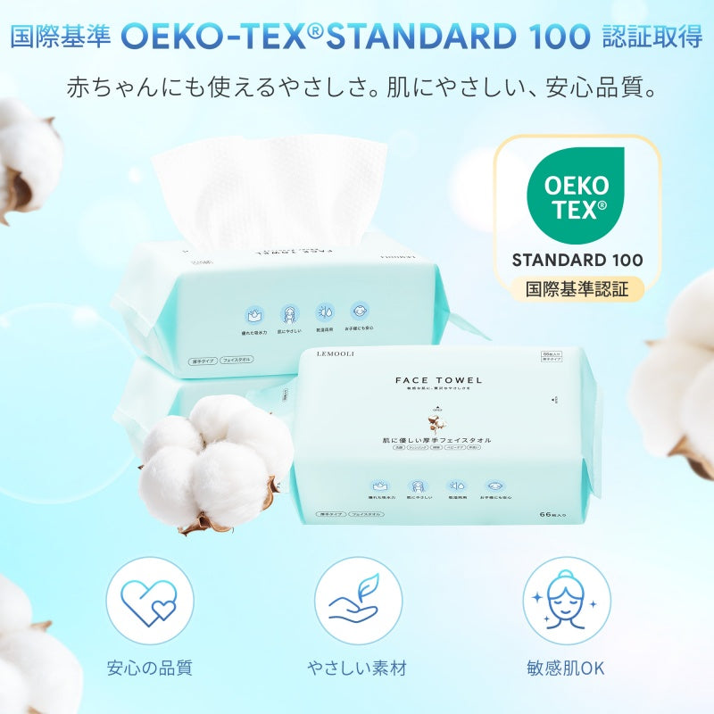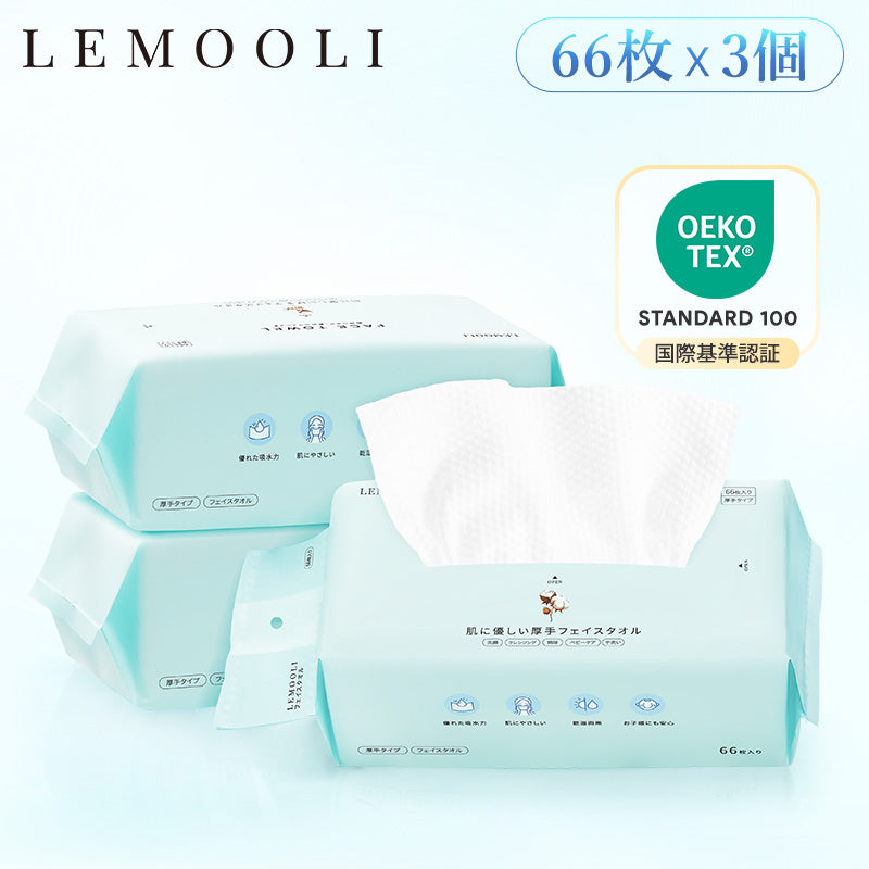フェイスタオル クレンジングタオル 洗顔タオル 【66枚*3個】 厚手タイプ 持ち運び便利 使い捨て やわらか肌触り 乾湿両用 赤ちゃんにも安心 高吸水
